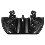 DEFENDER by Adam Hall 86101M is a black polyurethane end piece (male) designed for effective cable management and wiring safety. It features two channels, serving as a cable protector mat and reducing trip hazards. Ideal for use in office environments or event setups, it ensures cables are securely fastened and covered.