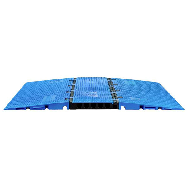 The DEFENDER by Adam Hall 869300SETBLU is a cable bridge designed for effective cable management and wiring safety. This durable product comes in a polyurethane blue-black finish, featuring five channels and measuring 1000 mm, making it ideal for anti-trip cable protection. It is commonly used in office environments to organise and cover cables, ensuring they are protected and reducing trip hazards.