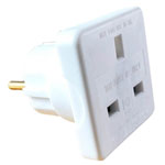The Dencon Travel Adaptor for UK visitors to Europe. Pins are fixed. Conforms to BS8546.