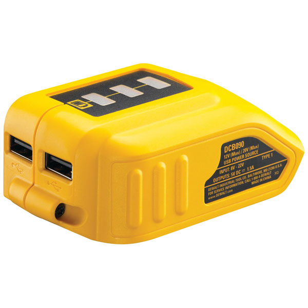 This 10.8/14.4/18V USB charger from DeWalt has been designed to transform your XR battery into a portable charger with two USB outlets, allowing charging of a wide range of small electronic devices. It has multi-voltage compatibility with 10.8, 14.4 and 18V XR battery packs, while also fitted with a bright, highly visible state of charge indicator.