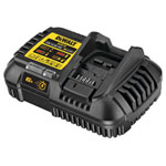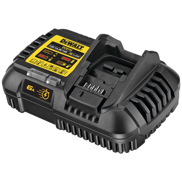 The DEWALT DCB116 XR FlexVolt Fast Charger can charge 12V XR, 18V XR and 54V XR FlexVolt batteries. A latching mechanism holds the battery in place securely for safety and ease when charging.