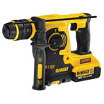 This 18V rotary hammer from DeWalt is ideal for drilling anchors and fixing holes into concrete, brick and masonry from 4mm to 24mm. The hammer drill has a rotation stop mode for light chiselling in plaster, tiles and render, plus an impact stop mode for rotary only drilling in wood and metal.