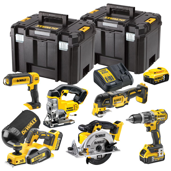Supplied with 3 x 18V 5.0Ah Li-ion Slide Pack Batteries and 2 x DWST1-71195 TSTAK™ Deep Toolboxes.
