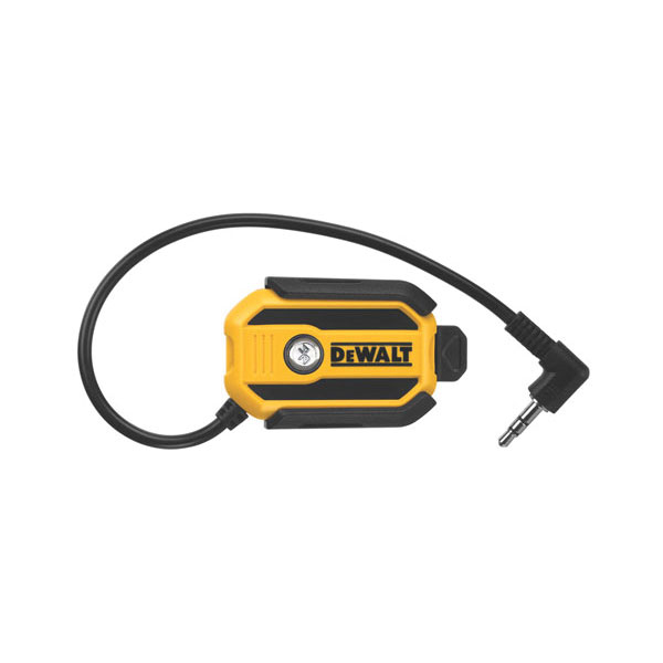This radio Bluetooth adaptor from DeWalt transforms any device with a 3.5mm audio jack into a Bluetooth® compatible device. This allows users to play music via any DeWalt radio through their Smartphone or Bluetooth® enabled audio player. It docks into a clip which can be mounted on audio player and fits into the tech box device storage on all DeWalt radios.