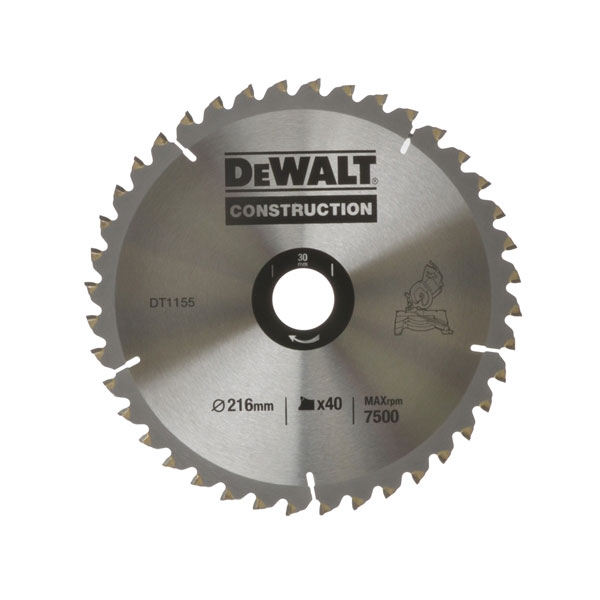DeWalt DT1155-QZ Construction Circular Saw Blade 216 x 30mm x 40T Series 30