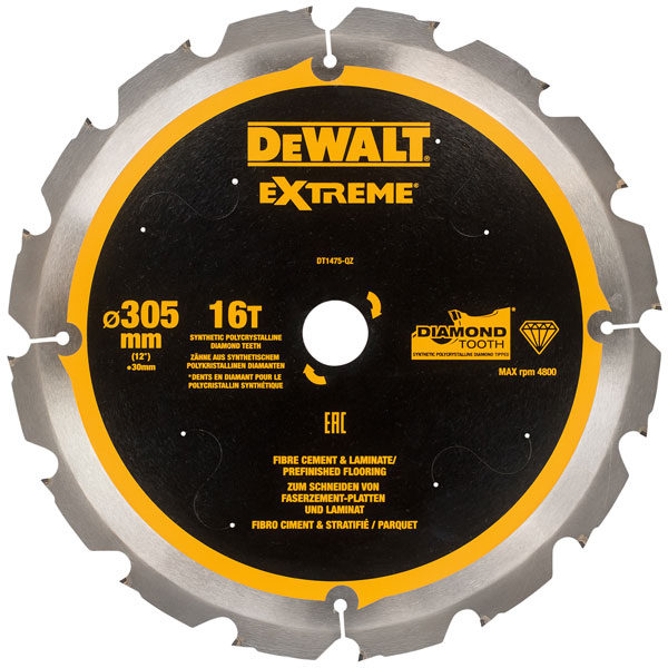 The DEWALT Extreme Cement Saw Blade features synthetic PCD (Polycrystalline Diamond) tipped teeth. These PCD coated teeth provide 100% longer life in fibre cement than TCT tipped blades. The laser cut blade features anti-vibration body slots and precision ground tips. The blade design also helps to reduce dust production when cutting fibre cement materials.