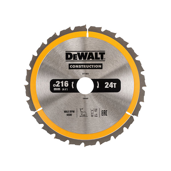 This DEWALT Construction Circular Saw Blade has been designed for cutting rough timber, possibly with embedded nails.