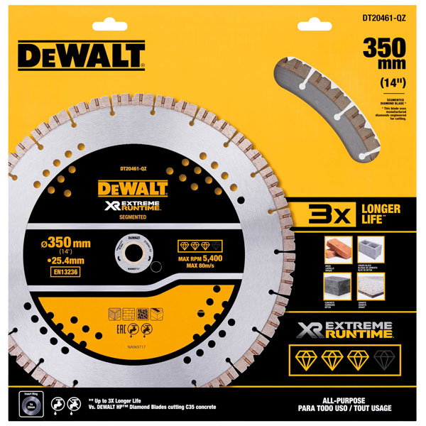 The DEWALT ELITE SERIES™ All Purpose Diamond Wheel specifications 355 x 25.4mm.