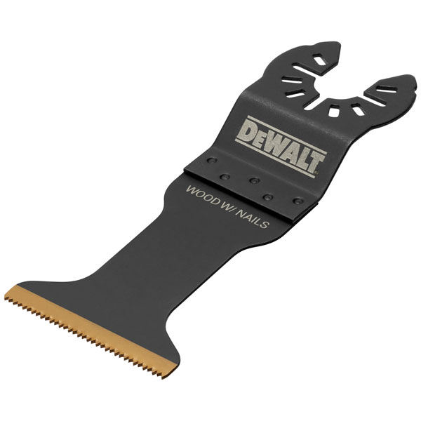 DEWALT DT20736 Titanium Wood/Metal Multi-tool Blade. Suitable for a wide range of cutting applications,  including wood & nails. UNIVERSAL FITMENT™ for adaptor-free use with all major oscillating tool brands. Durable enough to tackle tough jobs.