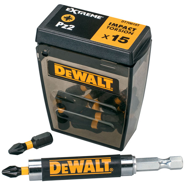 DEWALT DT70618T-QZ Extreme Impact Torsion Bits PZ2 (Tic Tac Box 15) and Holder