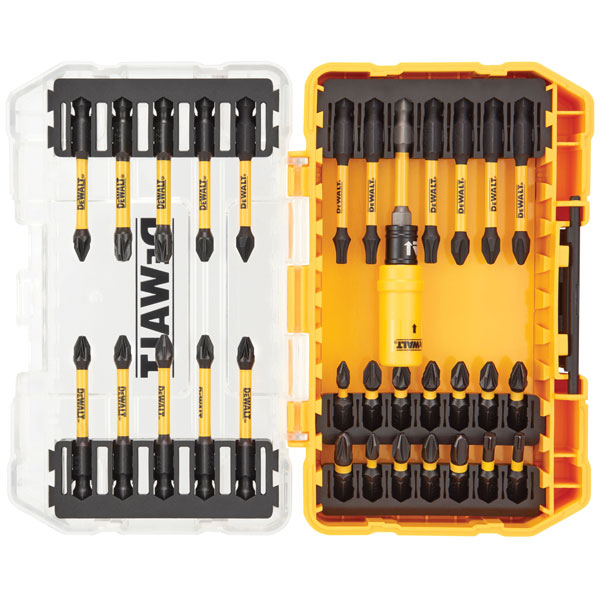 The DEWALT DT70737T FLEXTORQ™ Screwdriving Set contains a selection of EXTREME® FlexTorq™ screwdriving bits engineered for longer life. The built-in torsion zone has been designed to absorb and control high-impact forces, transferring them into the optimised geometry of the bit tip. Reducing the load on the driver and fastener, means secure fixing with longer life. The full fit head eliminates wobble and screw head rounding.