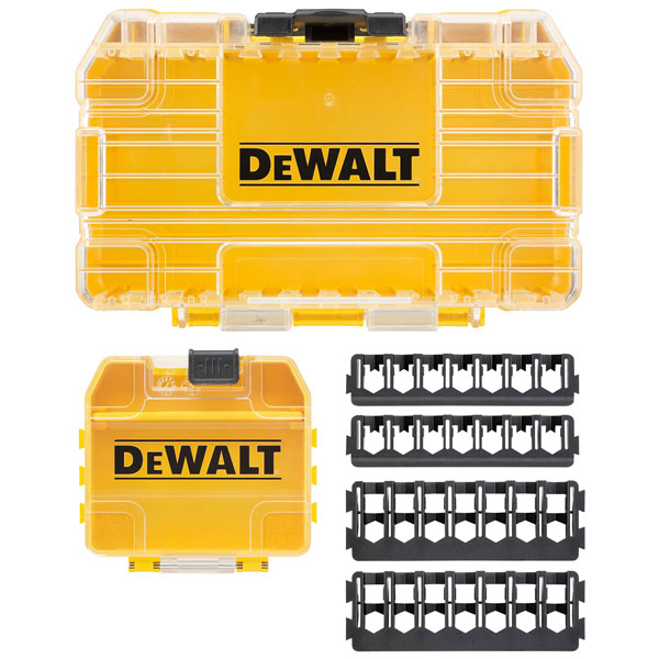 The DeWalt DT70801-QZ Small Tough Case has a clear lid for quick and easy identification of the contents.