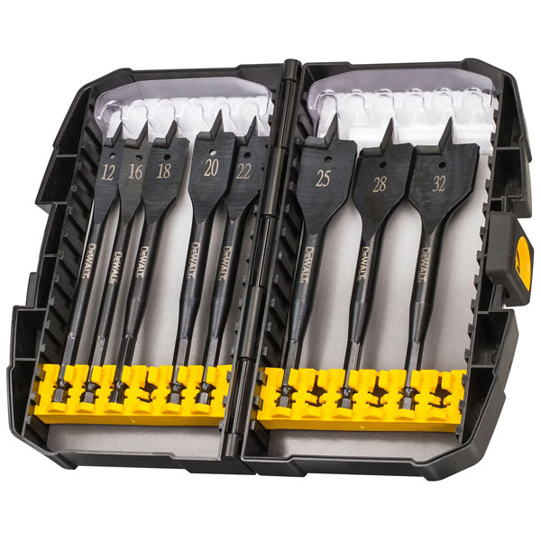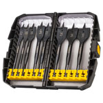 This set of extreme flatbits from DeWalt have an extra thick robust steel shank for outstanding durability and bit life, plus chamfered outer cutting spurs for clean, very fast drilling and extended drilling life. The precision ground central point has an optimised design for faster material penetration and increased drilling speed. Ideal for rapid drilling of holes in wood, for door locks, mortising, electrical and plumbing work, while suitable for natural hard and soft wood, chipboard and other man made materials.