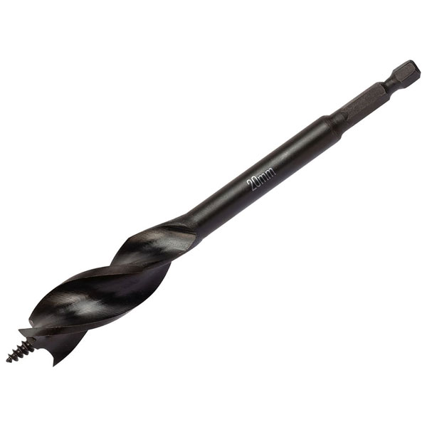 Fitted with a quick-change shank, fits standard quick-change extensions and 1/4in hex bit adaptors. For use with corded and cordless drills. Suitable for drilling holes in wood up to 100mm deep.