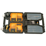 This 90-piece worksite set from DeWalt comes supplied in a robust plastic case with sturdy metal latches. The set contains an assortment of drill bits, flat bits and screwdriver bits: