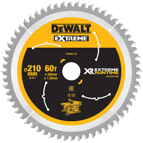 Suited to the cutting of large and thick timbers and various other site materials. Optimised for use with the DEWALT 54 Volt FlexVolt Table Saw to deliver maximum performance.