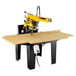 This 440V radial 3-phase arm saw from DeWalt is a heavy-duty free standing radial arm saw, featuring a solid cast iron arm machined to provide arm tracks with no inserts. It is pre-assembled requiring minimal setup, and delivered in a wooden crate. The controls are simple yet positive, and adjustment scales enable the width, depth and angle to be cut and set with accuracy.