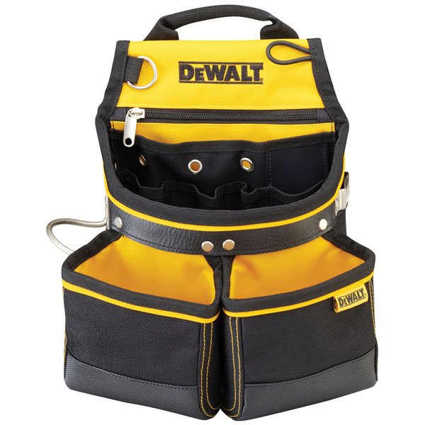 The DEWALT DWST1-75650 Nail Pouch is made from a strong, durable polyester fabric, 1200 denier. With metal rivets for extra reinforcement and extra leather on high friction points. The pouch has a rugged PVC bottom cover, to protect from wear and tear. DEWALT organizer cups can fit into the nail pockets, for easy transfer from storage box to belt.