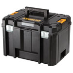 This deep tool box from DeWalt is a large volume unit for storing larger hand tools and power tools. It comes with a removable tray for quick access to small tools and accessories, plus a built-in wide handle for easy and stable portability. The tool box has strong, tough metal latches and metal hinges for heavy-duty use. Side latches allow it to be connected to other TSTAK tool boxes/organisers for easy carrying and safe stacking.