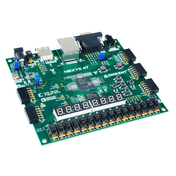 Diligent Nexys A7-100T FPGA trainer board is the new version of the ever popular Nexys 4 DDR board. The board is recommended for the ECE curriculum and is a ready-to-use digital circuit development platform designed to bring additional industry applications into the classroom environment.