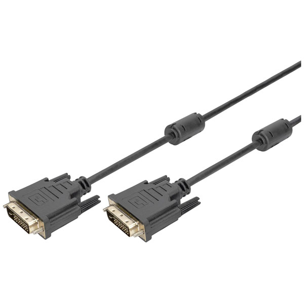 Digitus AK-320101-020-S is a DVI cable designed specifically for high-quality video signal transmission in professional and industrial settings. This audio and visual cable features DVI-D 24+1-pin plugs on both ends, ensuring compatibility with a wide range of digital video devices such as monitors, projectors, and graphics cards. With a length of 2 metres and a robust black design, it includes screwable ferrite cores for reducing electromagnetic interference, thus maintaining signal integrity over longer distances. Typically employed in scenarios where stable and high-resolution video transfer is essential, such as video editing suites and advanced display setups, this cable is essential for engineers looking to ensure clarity and precision in their digital visual systems. The use of high-quality materials and secure connections makes this cable a reliable choice for critical visual communication needs.