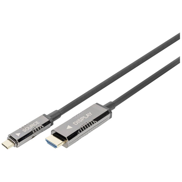 Digitus AK-330150-150-S HDMI/USB-C Cable 15 m Black Aluminium Braided Shield