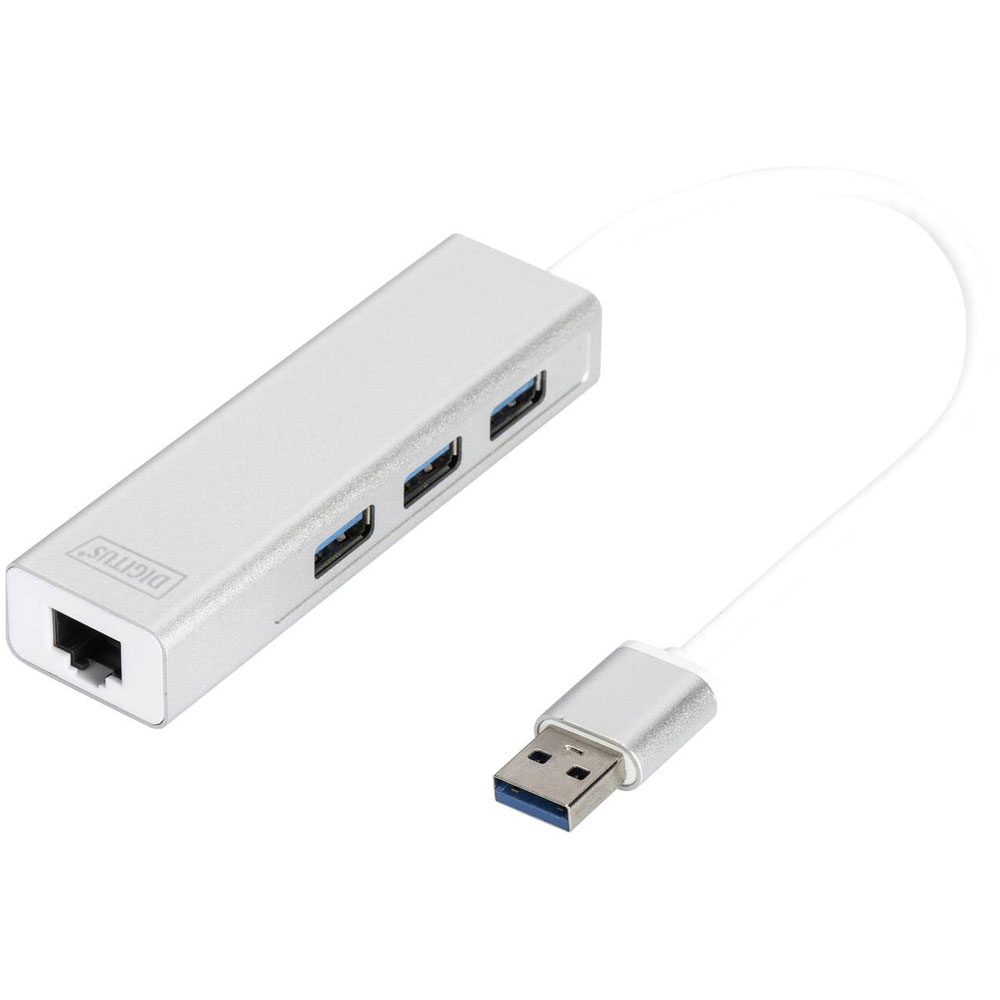 Digitus DA-70250-1 USB 3.0 hub 3+1 ports silver with built-in Ethernet port