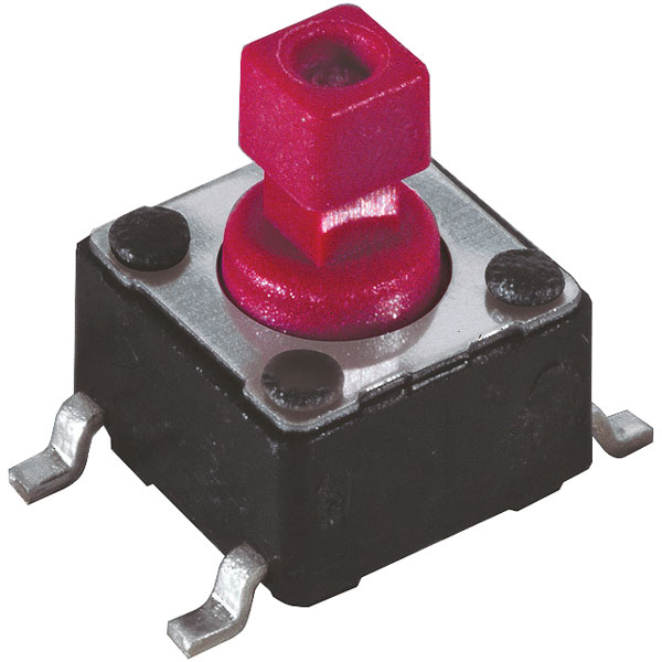 The Diptronics Low-Cost Tact Switch (Tube) DTSM-644R-V-B SMD 260g 50mA/12 VDC is a low cost, surface mounting tact switch for use with caps. Actuator and housing acc. to UL 94V-0.