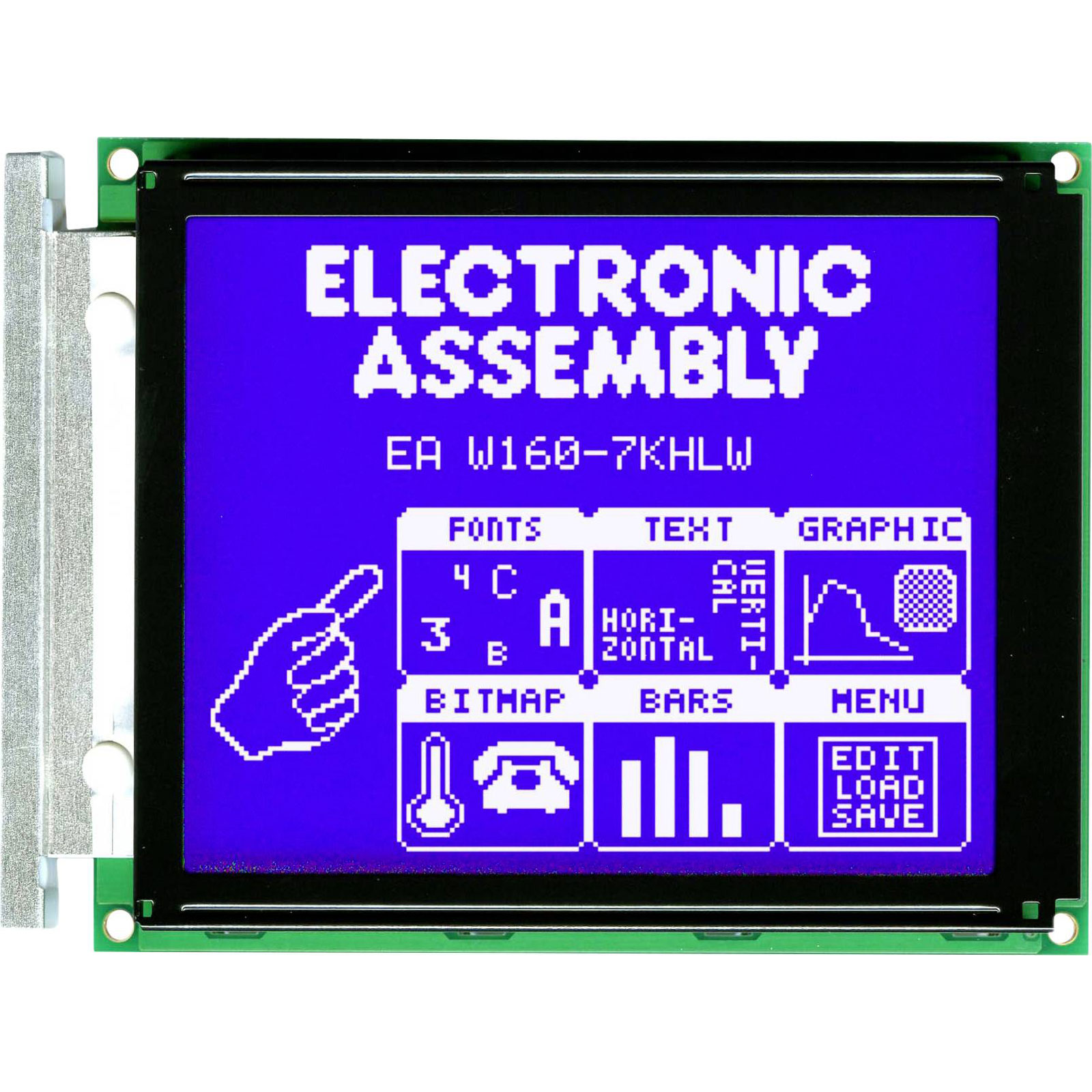 DISPLAY VISIONS EAW160-7KHLWTP is a versatile liquid crystal display specifically designed for integration into various industrial and commercial applications. Measuring 129 x 102 x 19.2 mm, this graphics display unit is characterised by its Super Twisted Nematic (STN) technology, offering enhanced contrast and viewing angles compared to standard displays. The EAW160-7KHLWTP is suitable for a range of uses, including instrument panels, control systems, and user interfaces where clear graphical representation is required. Its robust construction and advanced features make it a reliable choice for engineers seeking precise visual output in dynamic environments.