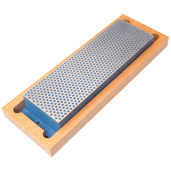 W8 Diamond Whetstones 200mm (8 in) are ideal for kitchen use and for the honing of smaller workshop tools. They have a large, wider diamond surface for sharpening a variety of knives and edges. They are supplied with a non-skid hardwood case, and tabs for permanent mounting are moulded into the stone's base.