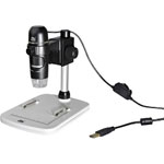 This digital microscope and stand is the ideal combination for digital microscopy applications in the classroom, laboratory or workshop. The 5.0MP CMOS sensor camera and up to 300x magnification enable the capturing of still images and high quality video, passing them via USB for display and processing. Object illumination is by 8x white LEDs that can be dimmed to give the best lighting for the task at hand and the stand can be adjusted up and down via coarse and fine rotary knobs, locking into place when required.
