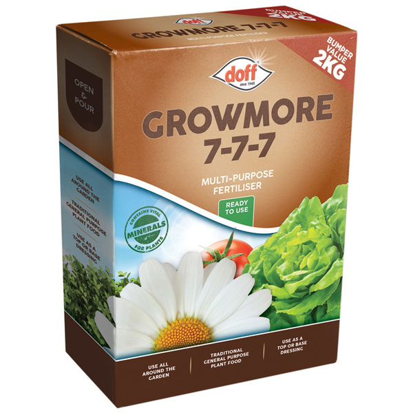 Doff Growmore Ready-To-Use Fertilizer is a traditional general-purpose plant food, perfectly balanced for use all around the garden, supplying the 3 major plant nutrients in equal measure. It can be applied as a top or base dressing to a wide variety of crops and ornamentals. Growmore boosts fruit and vegetable crops by building soil fertility.