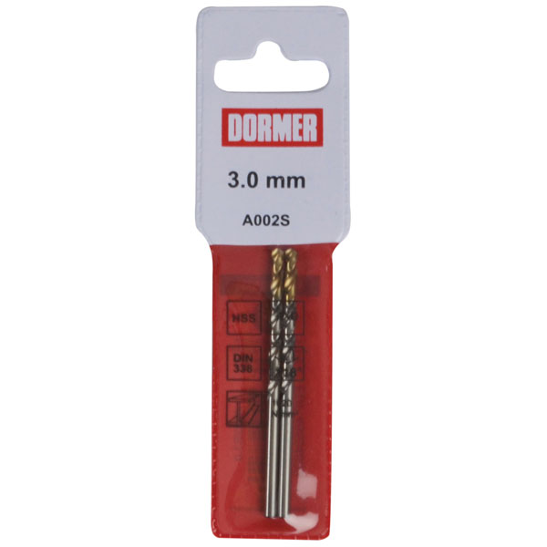 Dormer A002 HSS-TiN Coated Jobber Drill 3.0mm.