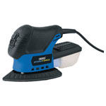 Interchangeable base and finger plates, Hook and loop base pads, Dust collection box, Supplied with 24 sanding sheets and 2M cable with BS plug.