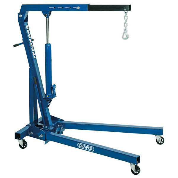 Foldable engine crane with single piston hydraulic pump. Four pre - set positions for lifting. Carton packed in two boxes on pallet.