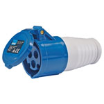 IP44 rated 230V site socket, conforms to latest EN regulations. A spring-hinged lid protects socket when not in use. IP44 splash proof rating makes this socket ideal for use in a variety of outdoor environments including marinas, campsites and on construction sites.