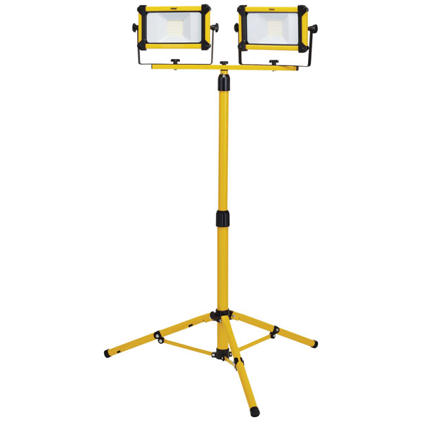 This 6,600 lumens telescopic slim tripod twin head (3,300 lumens per light) SMD LED site light gives an even spread of light through a beam angle of 100 degrees.