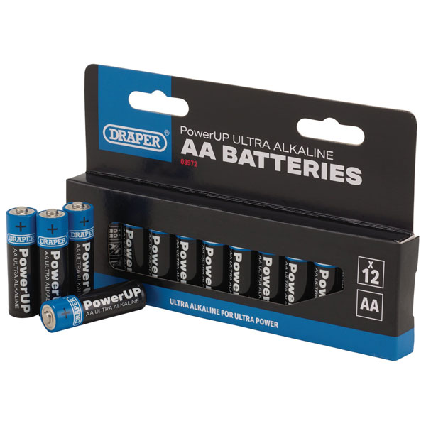 Draper 03972 PowerUP Ultra Alkaline AA Batteries (Pack of 12)