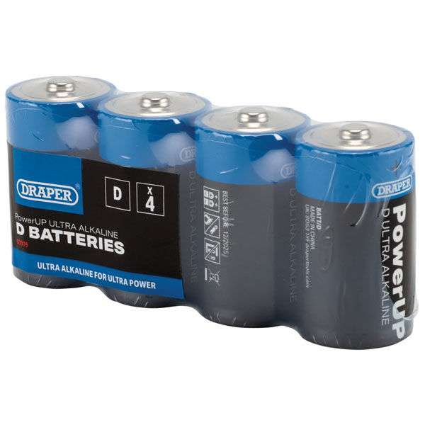 Draper 03979 PowerUP Ultra Alkaline D Batteries (Pack of 4) - 03979