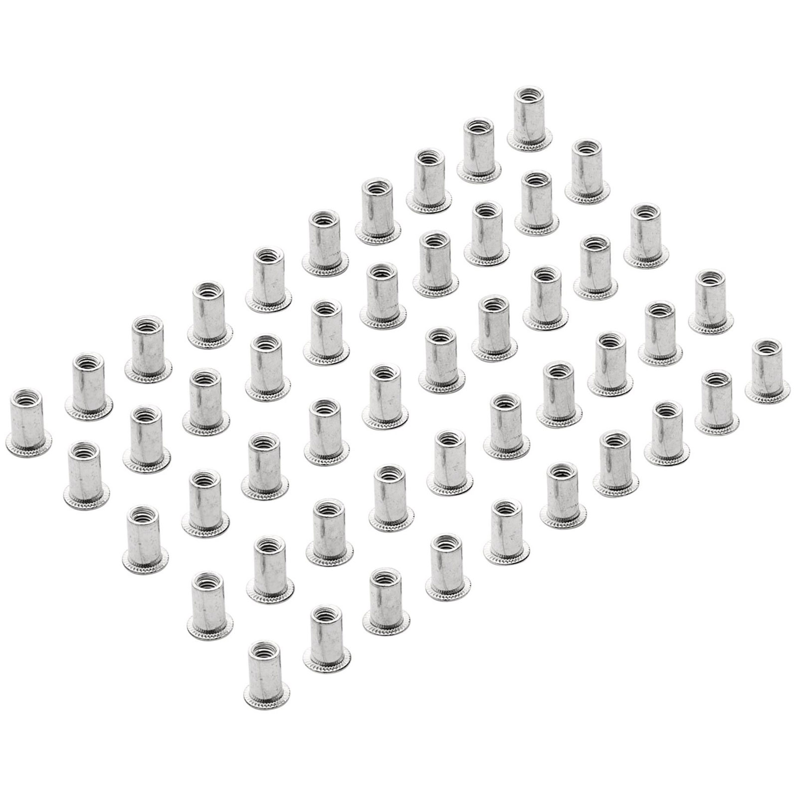 Pack of 50 zinc plated threaded inserts.