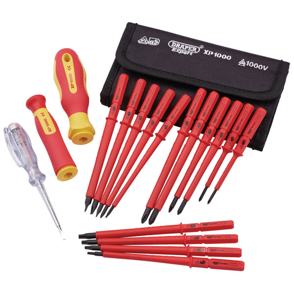 Draper 05776 XP1000 VDE Dual Insulated Interchange Blade Screwdriver Set (18 Pc)