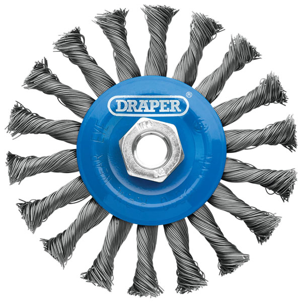 Draper 08058 Steel Twist-Knot Flat Wire Wheel Brush 115mm M14 - 08058