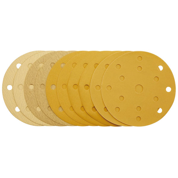 Draper 08480 Gold Sanding Discs-Hk&Loop 150mm 120-400G, 15 Dust Extr. Holes 10Pc