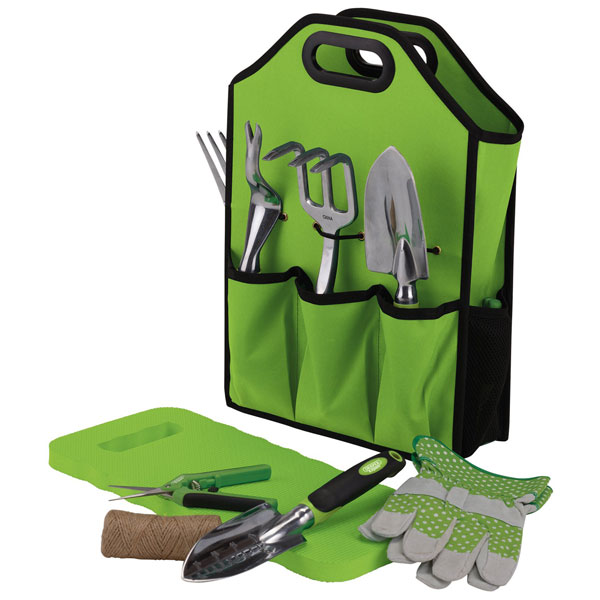 This Draper 08998 Aluminium Garden Tool Set with Storage Bag contains seven durable and lightweight gardening tools, a kneeler, jute string, a pair of gardening gloves, and a convenient storage bag with strong handle.