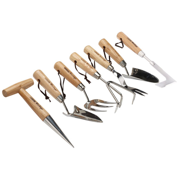 This Draper 09000 Heritage Stainless Steel Garden Tool Set with Ash Handles offers a comprehensive range of stainless steel hand tools including two trowels, two weeders with weeding fork, a dibber and cultivator.