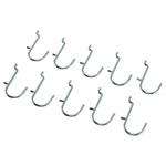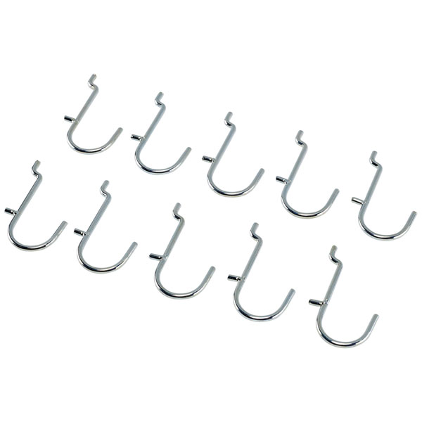 Our pack of 10 metal J-hooks are specifically designed for use on our range of back panels and pegboards.