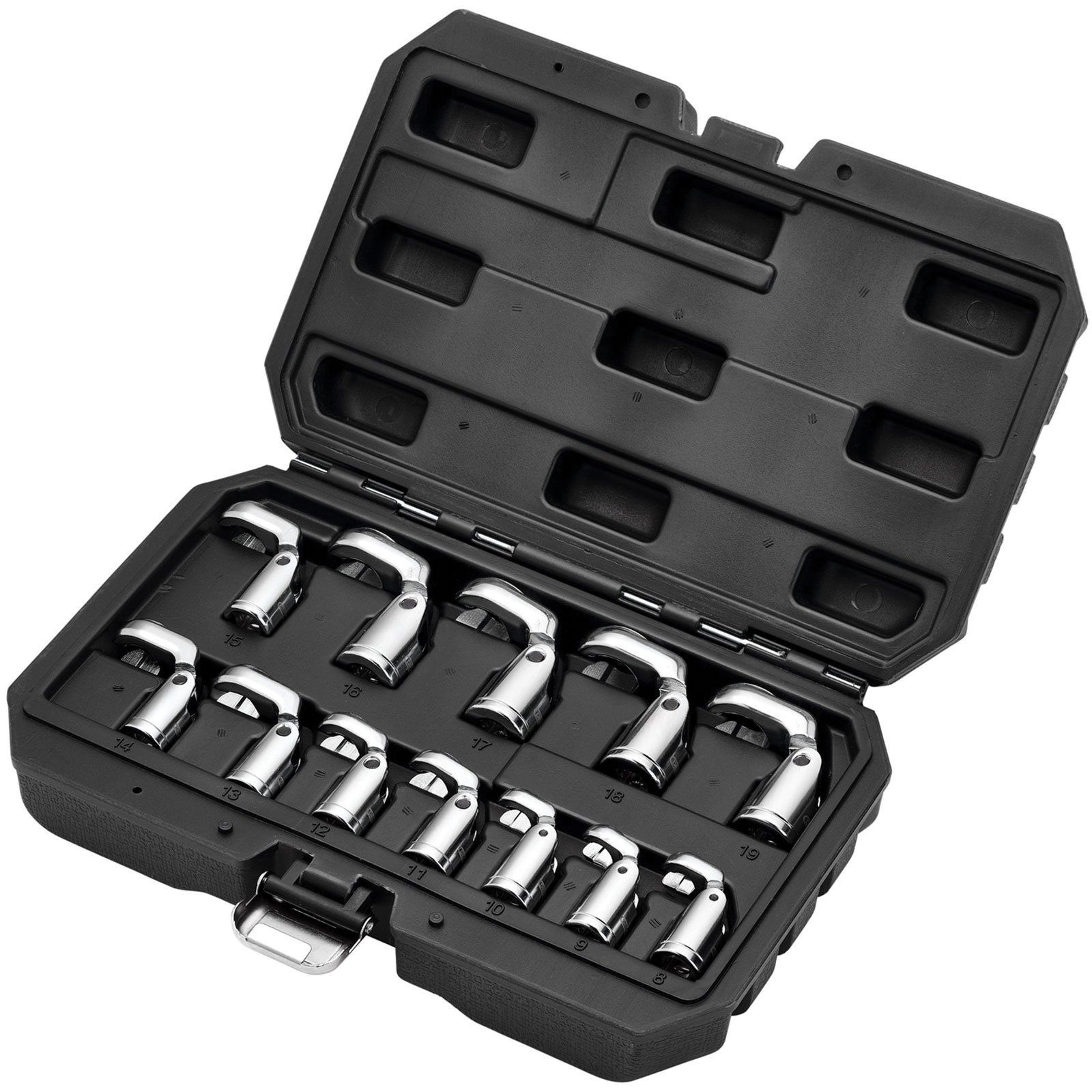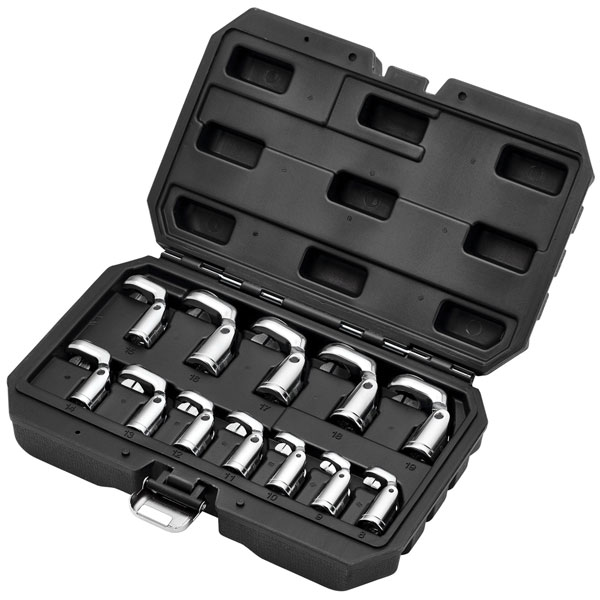 This flexible crowfoot socket wrench set is ideal for hard-to-reach areas, providing up to 110° access.