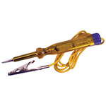 Circuit tester with transparent plastic handle housing neon light. Testing range 6-24V DC. Supplied complete with 750mm of insulated cable with crocodile clip. Display packed.