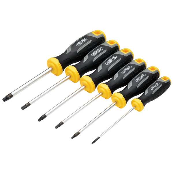 This Draper TX-STAR® Tamperproof soft grip screwdriver set offers a selection of popular sizes.