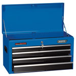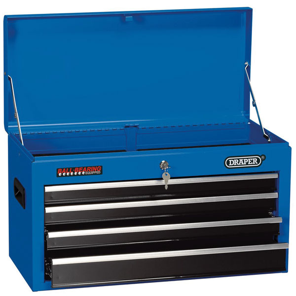 4 drawer tool chest manufactured from sheet steel with a powder coated finish and Aluminium effect trim. Drawers are fitted with ball bearing runners for smoother operation and a protective foam liner. Each tool chest is fitted with heavy - duty carry handles and a secure integral locking system Supplied with two keys. Carton packed.